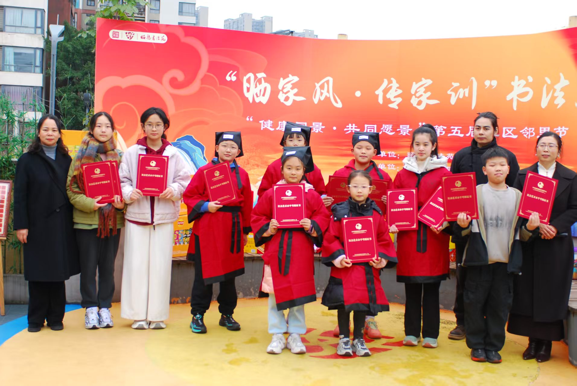 惊喜满满的幸运抽奖环节更添活动暖意,5组幸运家庭分获特色奖品,欢声笑语中让文化活动更具凝聚力。“让笔墨成为修身的阶梯,让家训成为成长的明灯”,正如活动初衷,此次书法展览以书法艺术为桥梁,不仅让孩子们在书写中亲近传统文化,更让好家风通过笔尖传递、在家庭扎根、在社区弘扬,实现了“以家风之正涵养民风之淳”的良好效应。