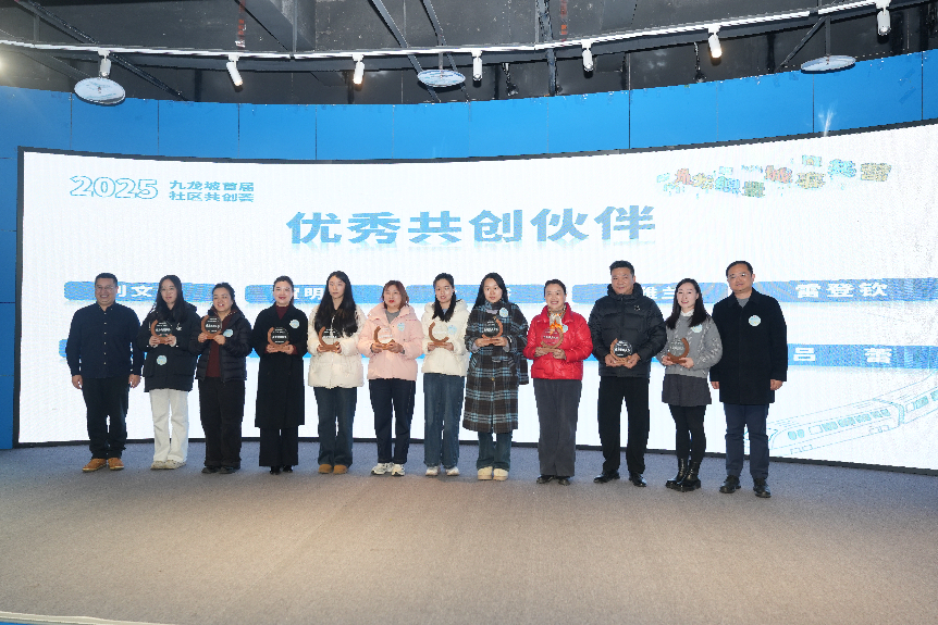 12月24日,由中共重庆市九龙坡区委社会工作部主办、成都市爱有戏社区发展中心承办的“九龙织景・城事共营”九龙坡区首届社区共创荟闭幕式暨颁奖仪式在重庆启迪科技园举行。九龙坡区委副书记田中,区委组织部、区委社会工作部、区民政局相关领导,13个镇街分管负责人,高校学者、治理专家、25个项目共创组代表、创意设计师及媒体代表齐聚一堂,共同见证这场历时近6个月的社区共创行动圆满收官。