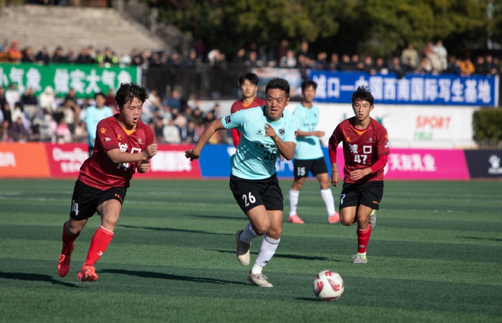 ▲万州队(蓝)本周末将迎来最后一个主场比赛,对阵丰都队。图为12月6日,万州队客场4:0战胜城口队。特约摄影 冉孟军 摄