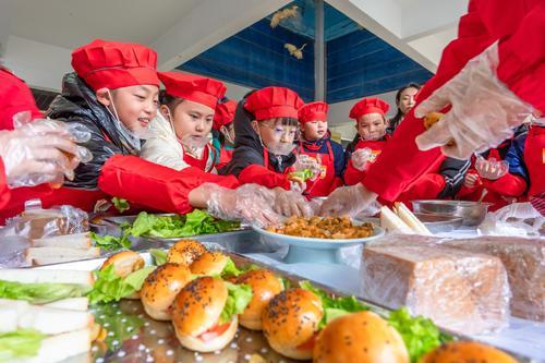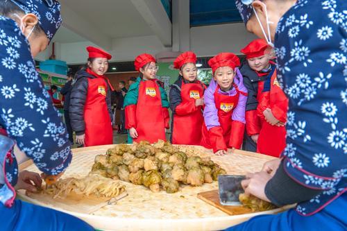 ▲2025年12月25日,涪陵城区第七小学兴涪校区,学生用榨菜制作美食。记者 李雨恒 摄