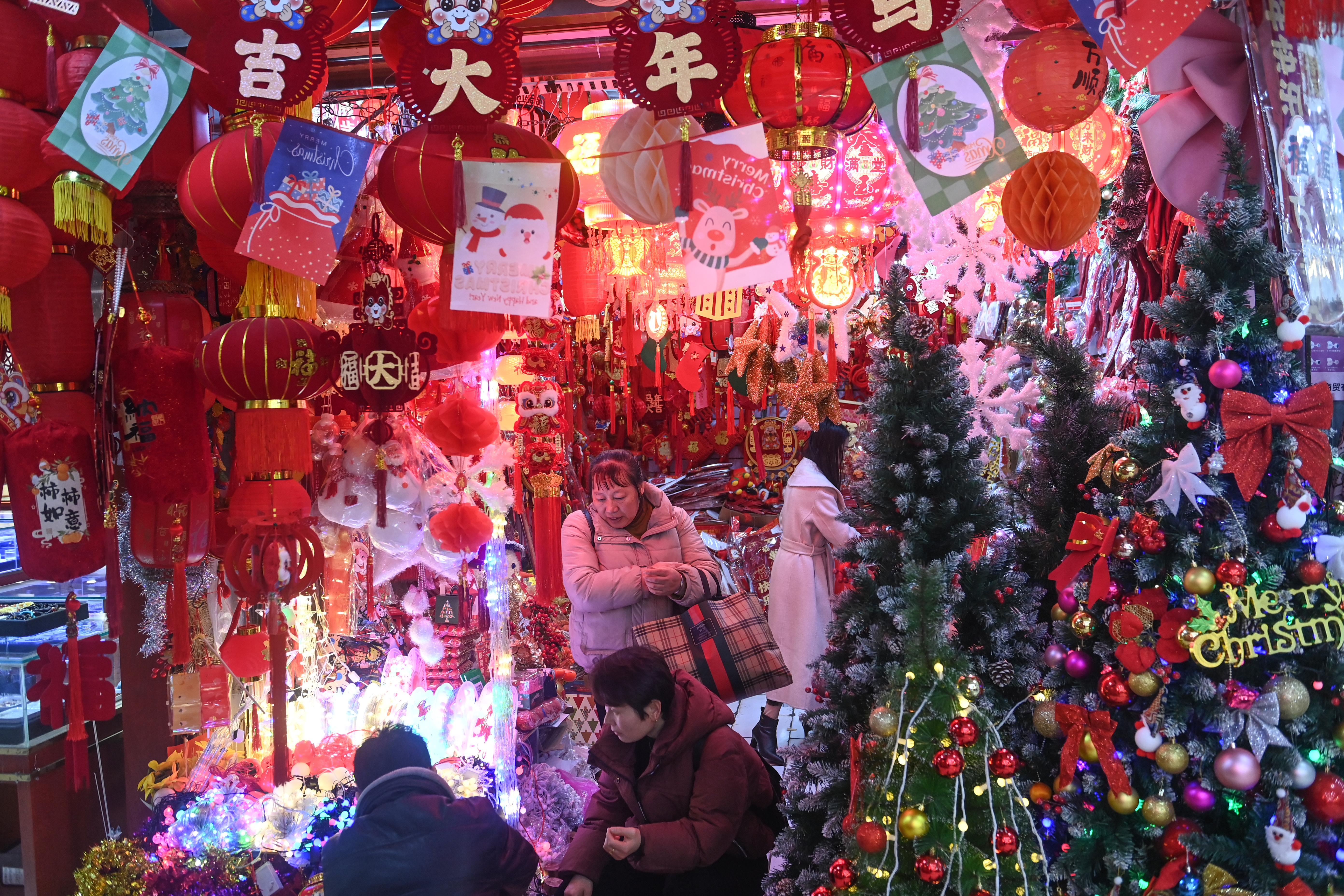 ▲2025年12月25日,渝中区小什字小商品市场,市民正在挑选新年饰品。记者 郑宇 摄