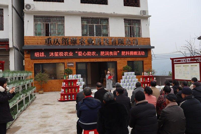 重庆绍雄农业科技有限公司、重庆沐笙极农业科技有限公司在此次活动中,为村民捐赠一批生物菌肥、水溶肥和土壤调理剂等系列产品,捐赠方式为现场登记,安排专人将肥料送到村民的田间地头。