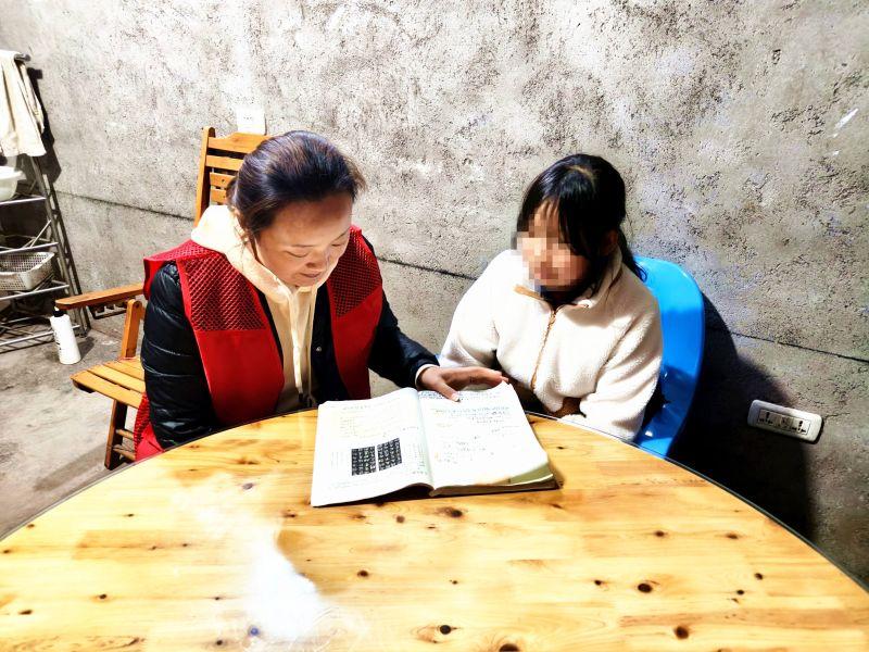 “桥城先锋”志愿者为孩子辅导功课。(摄影:傅国霜)