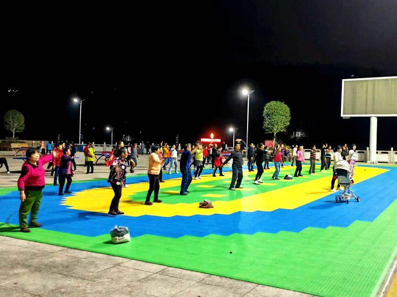 路灯修复,居民们在路灯下跳广场舞。(摄影:傅国霜)