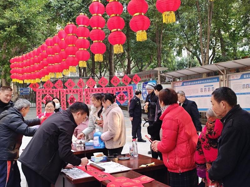 1月27日,为深入弘扬中华优秀传统文化,丰富辖区居民精神文化生活,营造欢乐祥和、邻里和睦的节日氛围。重庆高新区虎溪街道虎中社区依托“三哥来帮忙”党建服务品牌,携手辖区企业共同举办“写春联送祝福”迎新春主题活动,以笔墨传情、以互动暖心,为居民们提前送上满满的新春祝福与冬日暖意。