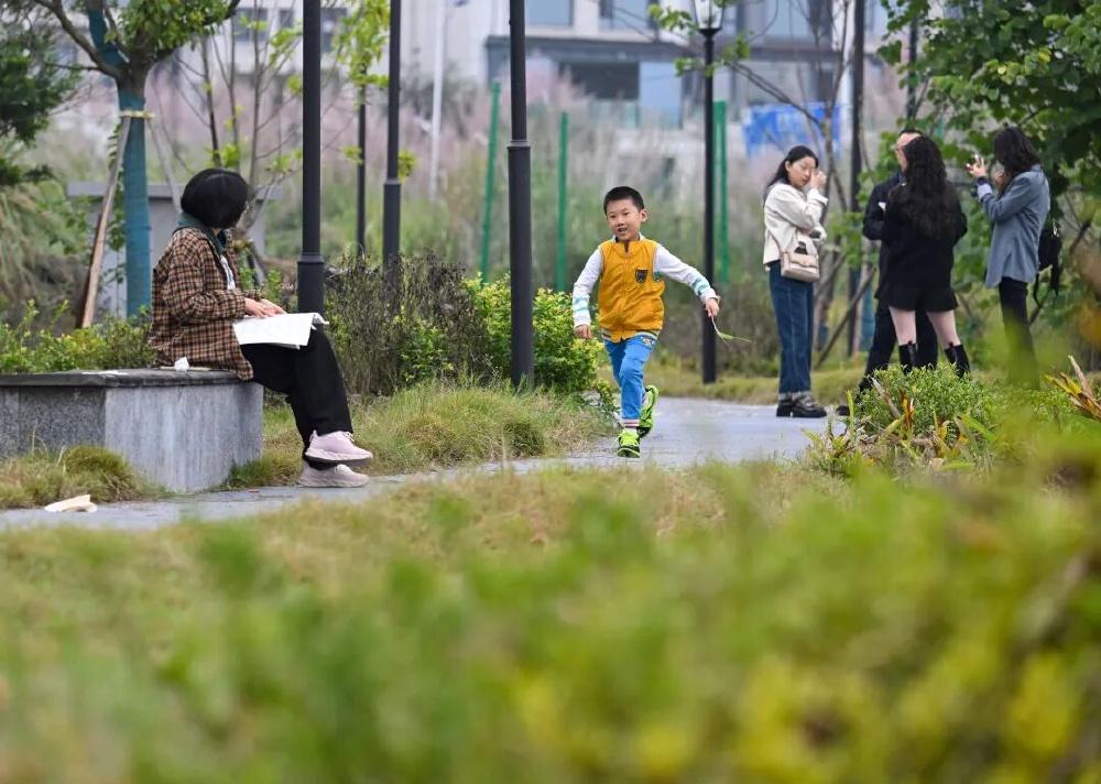 ▲2025年11月2日,重庆市两江新区水土新城西大附中水土校区2号门旁,市民在口袋公园休闲。记者 张锦辉 摄/视觉重庆